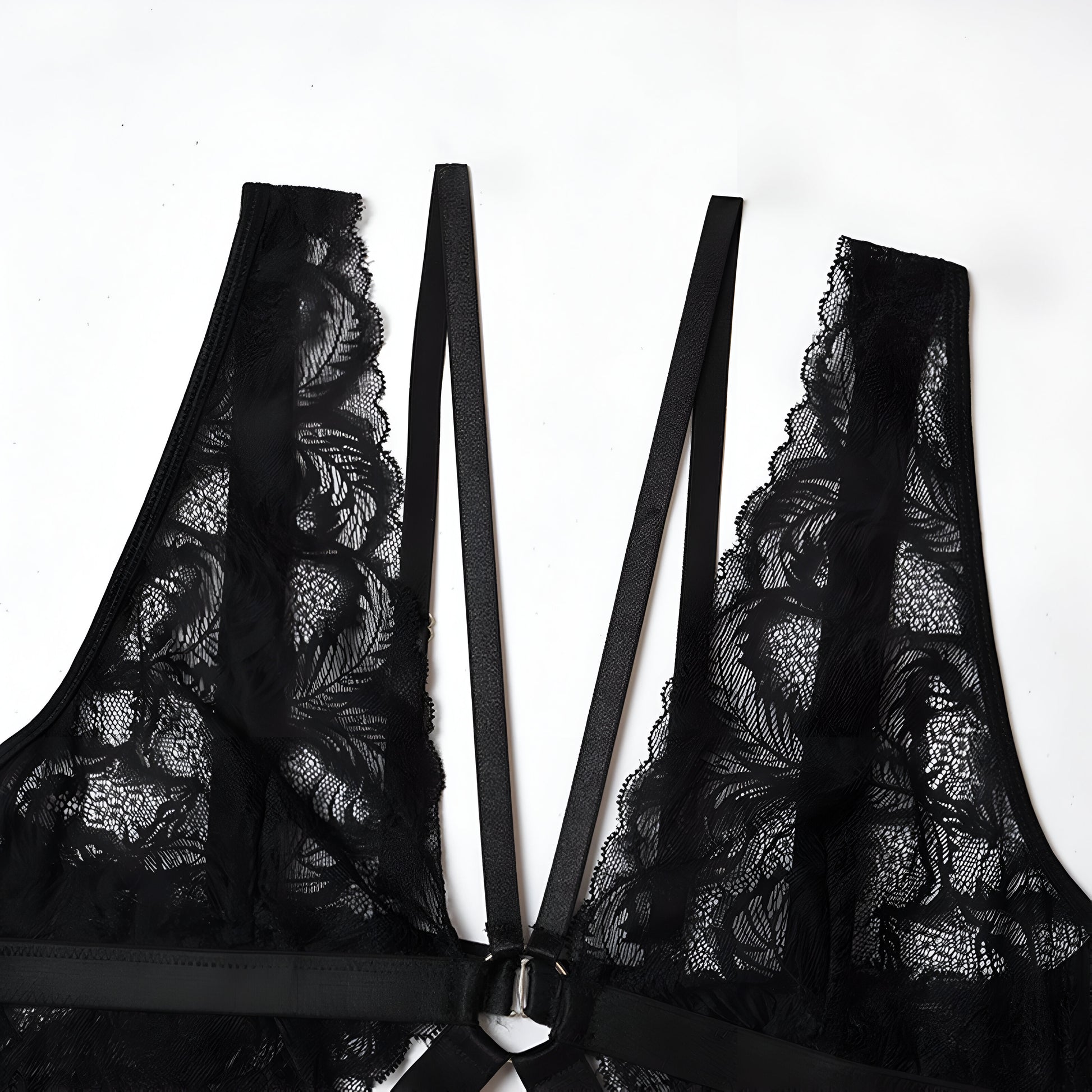 Laura™ combineert de elegantie van kant met spannende strappy details die niets aan de verbeelding overlaten. Deze bodysuit is gemaakt voor vrouwen die weten wat ze willen — en dat ook laten zien.